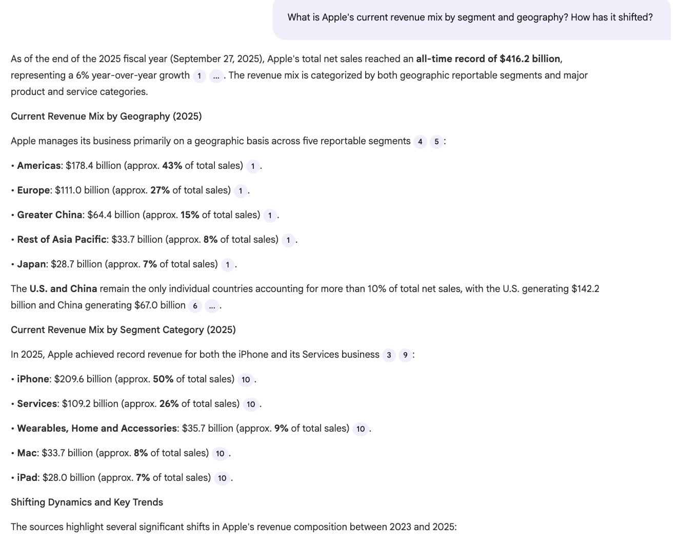 Try asking it about services margins, capital allocation, China strategy, or specific risks from the 10-K.