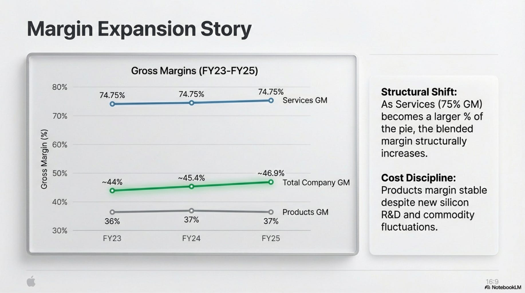 - Slide 7: Gross Margin Analysis (Product vs. Services)